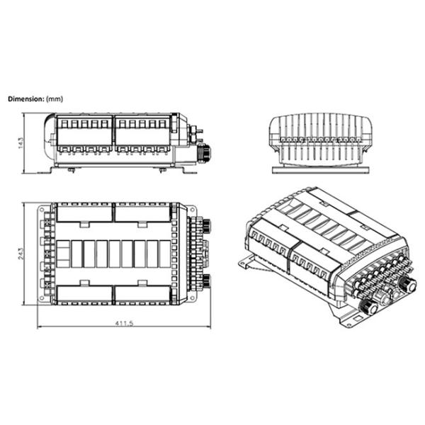 Cable ports: 4pcs Φ18mm entry cable ports & 16pcs 3mm drop cable ports