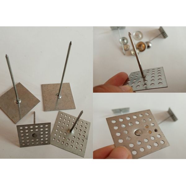 Perforated baseinsulation pins are made of metal nail and square perforated base.