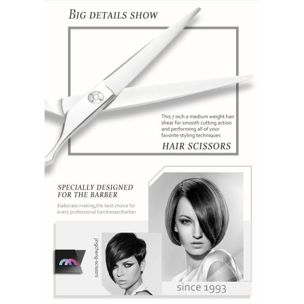 The standard 7" blade with powerful handles, sharp blades for a relaxed cut. fine workmanship, excellent stability, smoothness and sharpness. Users will fully experience the scissors perfect.