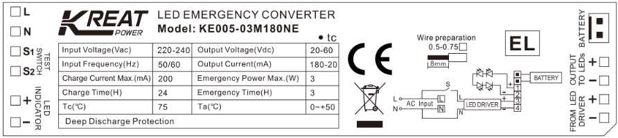 LED Emergency Driver Power 3W Emergency Time 3h & External NiCd Battery KE005-03M180NE