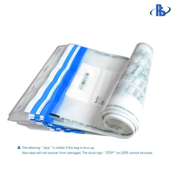 The tamper evident bags are made of high strength3 layers co-extruded PE film (opaque or transparent) and completely recyclable. They are lightweight, easy-to-handle, disposable tamper evident (resistant against freezing spray, hair dryer, tearing, etc).