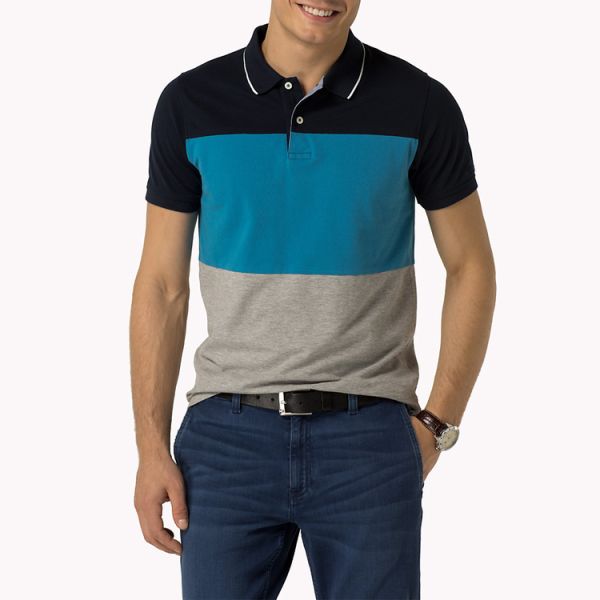 Quick Dry Mens Polo Style Shirts Golf Clothing , High Collar Striped Polo Shirts