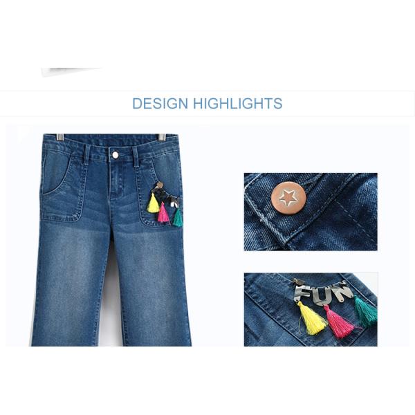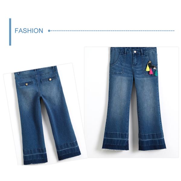 High quality kids girls wide leg tassel trim adjustable waist denim jeans