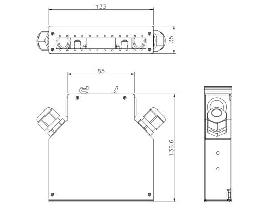 DIN-00133x136.6x35mmAluminum12 SC simplexMax. 24 fibers4 portsDIN rail mounted