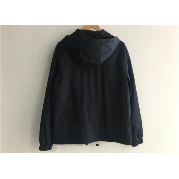 Hood to be 3 piece with dtm foot stitching and navy contrast elastic shock cord drawcord.