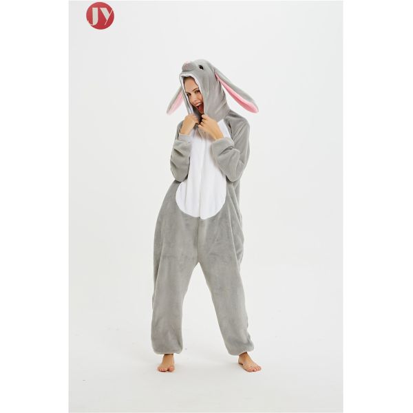 Long Ears Fleece Onesie Pajamas For Women Adult Cartoon Animal Christmas Halloween Cosplay Onesie