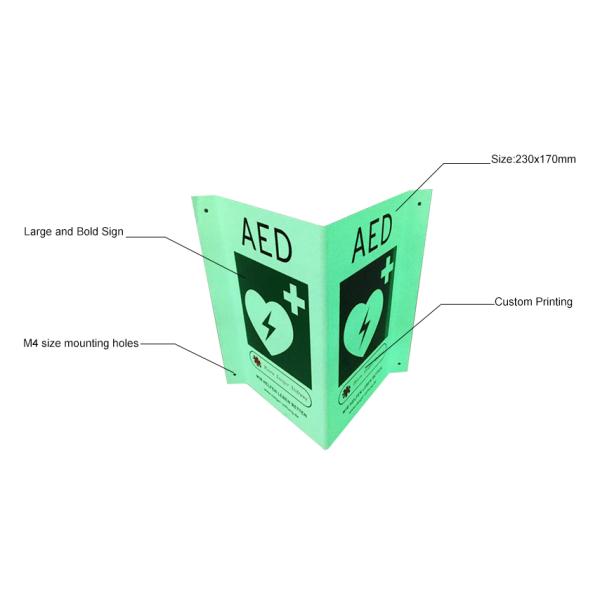 V Shaped 3 Way Heart Sign AED Wall Mounted With Night Glow Painting