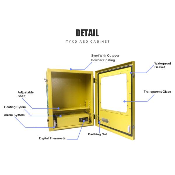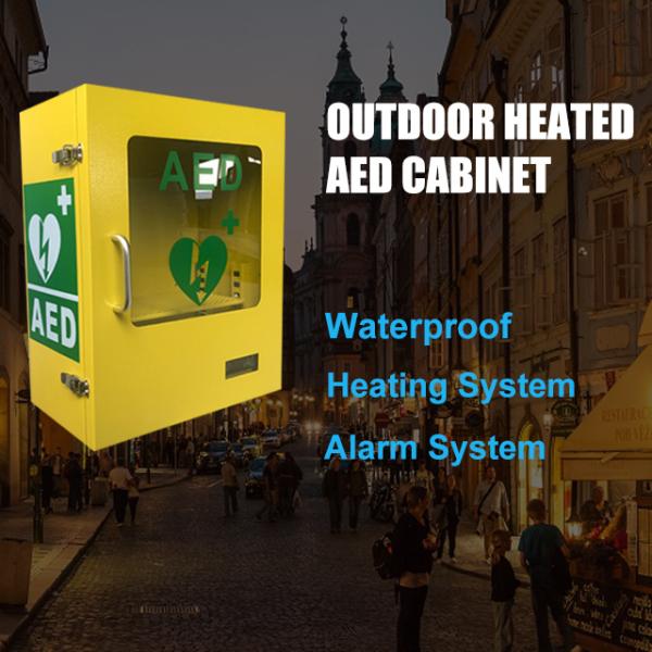 Yellow Outdoor Wall Mount Alarmed AED Cabinet With Heating System