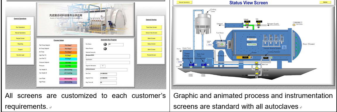 The autoclaves components and sensors will be monitored and controlled by the TPC control system. TPC is the Windows XP version of OLYMSPAN’s computerized control software. TPC was developed by OLYMSPAN in 2006 to be a single software control platform for most autoclave applications.