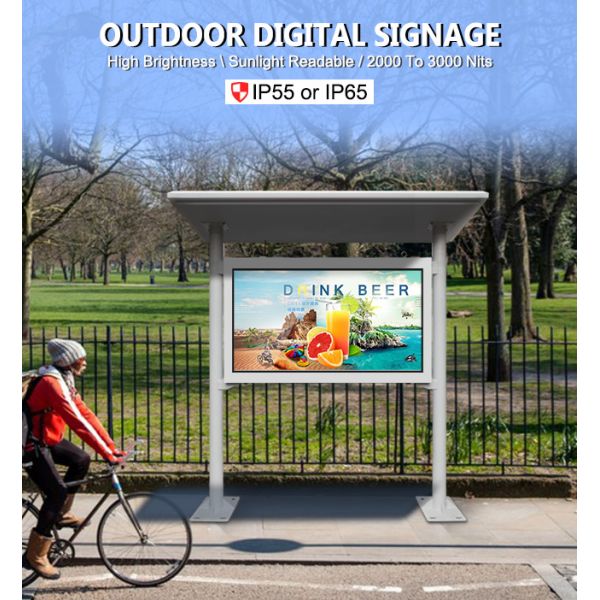 This series of outdoor advertisng player with canopy are widely used in bus station, park ,zoo ,airport etc. It can protect people from the rain, at the same time screen is displaying advertisement in picutures, videos or texts which is eye-catching.