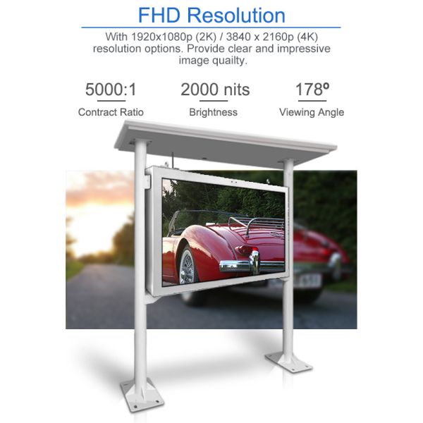 IP55 waterproof IP rating design to protect displays while is exposed to harsh weather conditions