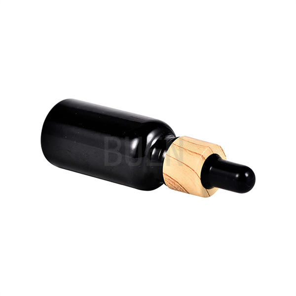 Black Oil Dropper Glass Bottles with Wood Grain Dropper Cap |