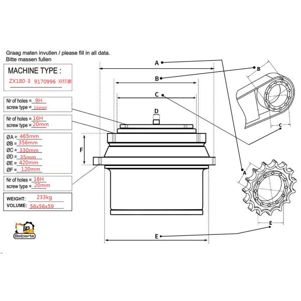 Excavator Zx180-3 9170996 ZX200-3 ZX200-5G ZX210-5G travel gearbox