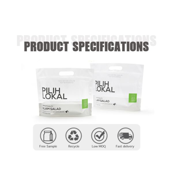 OEM Logo Clear Zip Lock Plastic Bags Lettuce Vegetables Packaging Bags with Stand Up Bottom Fresh Fruits Pouch