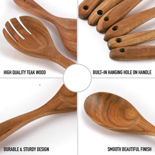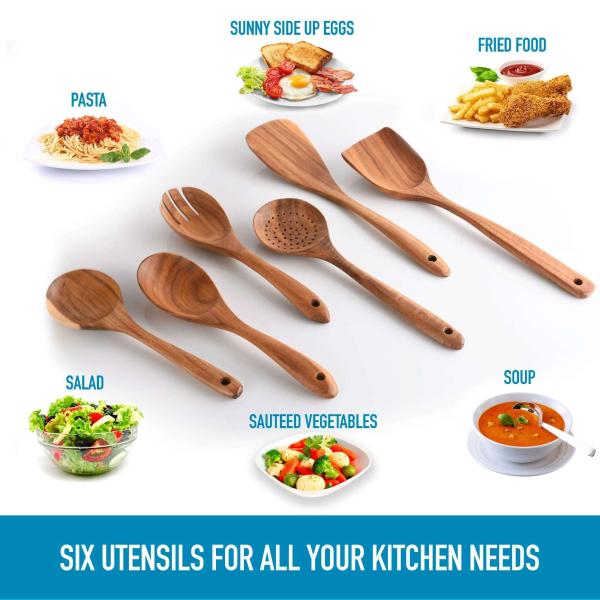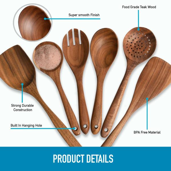 Premium Natural Teak Wood - Handcrafted From Premium, Natural, Uncoated Teak Wood, Our Wooden Spoons For Cooking Offer a Touch Of Elegance. Kitchen Utensil Set Includes 6 Wooden Spoons And Spatulas, Ensuring They Are Safe To Use And Perfect For All Your Cooking Needs.