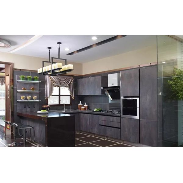 Retro style high end kitchen cabinet designs with stainless steel flame antibacterial countertop