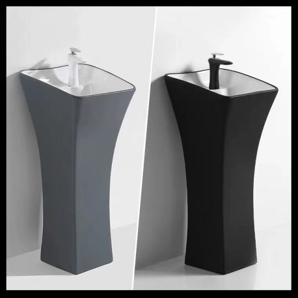 Best Selling Bathroom Pedestal Sink High Quality Handmade Black Standing Basin Sink