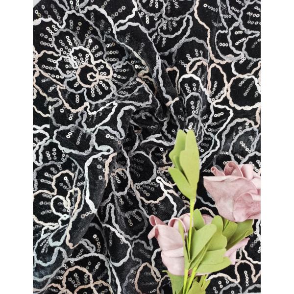Velvet Lace Fabrics Sequin Embroidered Fabric Embroidery Evening Dress Fabric