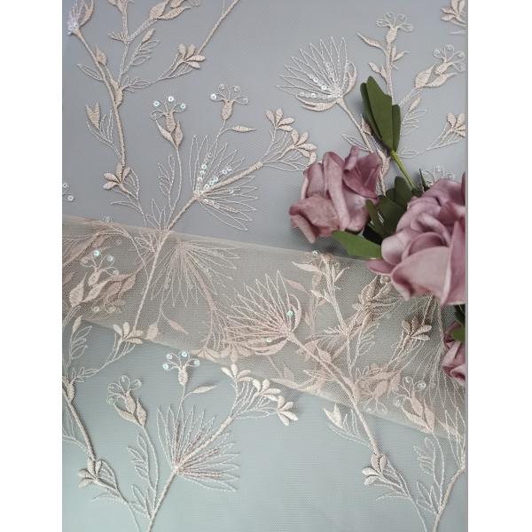 Light pink french high end 3d Sequin Embroidered Fabric tulle lace fabric