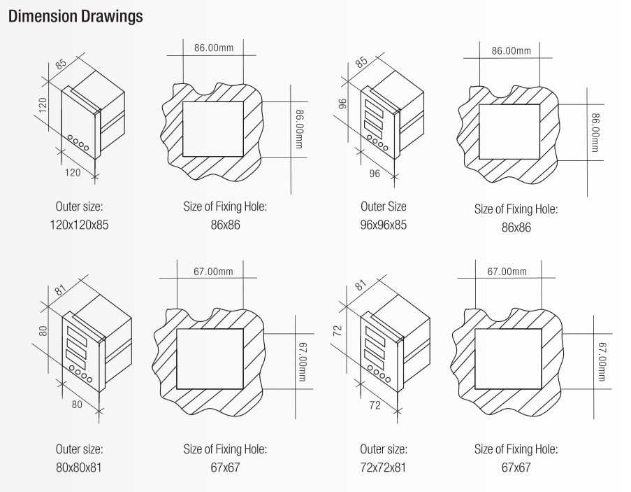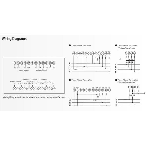 LCD multifunctional meters can accurately measure and display all the common electrical parameters of three phase power grid, such as three phase voltage and current, active power, inactive power, power factor, frequency, active energy, reactive energy, communication interface and energy pulse output function. with MODBUS-BTU communication protocol, the meters can display by LCD and achieve RS-485 remote digital communication. With features of convenient installation, easy wiring and maintenance, programable at site etc. the meters can also proceed the networking communication between different PLC and industrial control computers among the industry.