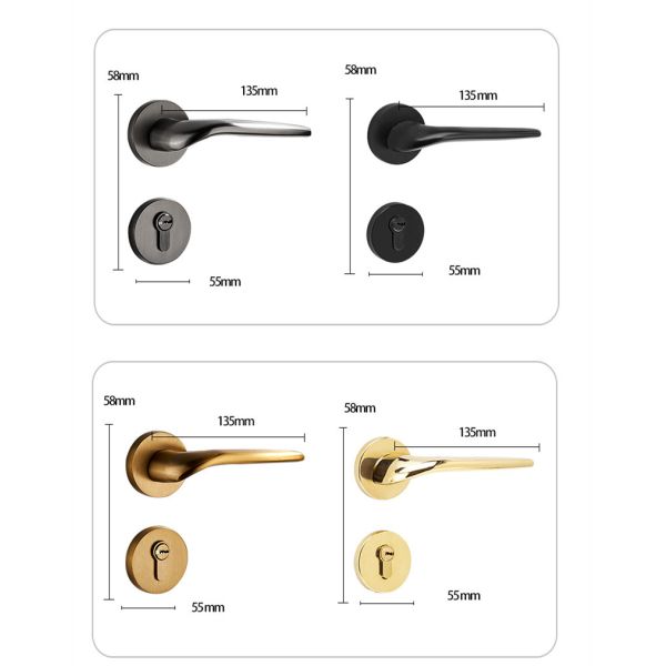 Bedroom Door Entry Door Split Mortise Door Lock Handle Set Zinc Alloy Gray Black Golden Color
