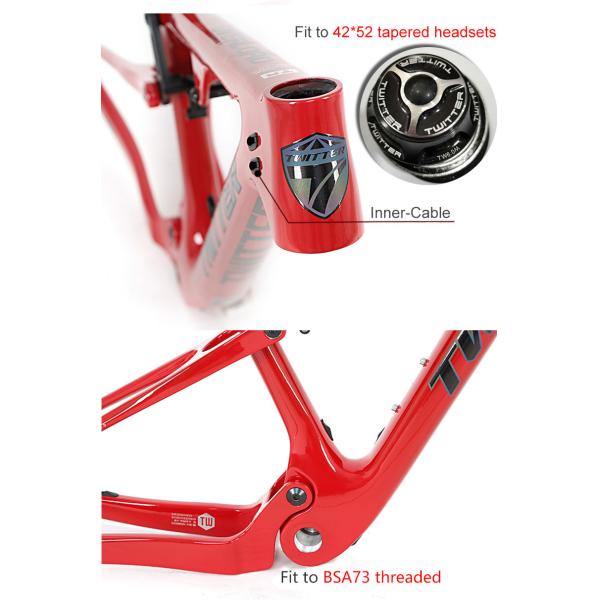 | ASSY Size | Head tube 42*52+BSA73 threaded+Seat post 31.6+Clamp 34.9, Thru axle 12*148mm Boost, Rear shox 165*35*22mm, Frame travel 120mm,Apply to max 27.5*3.0&29*2.35 tyre |