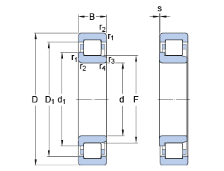NUP cylindrical roller bearings have ribs on both sides of the outer ring, ribs on one side of the inner ring, and movable ribs on the other side. Therefore, the bearing can be bidirectionally positioned on the shaft.