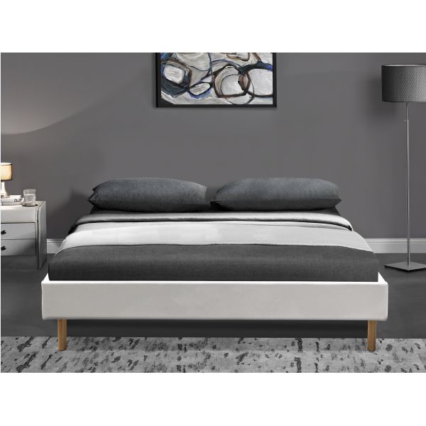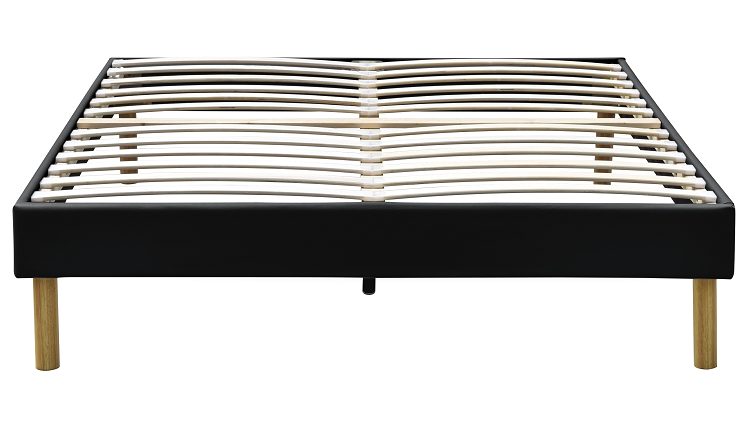 Simple Upholstered Platform Bed base easy assemble with 24 pieces sprung slats PU white grey or black wood legs