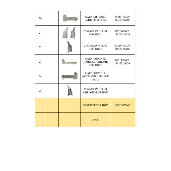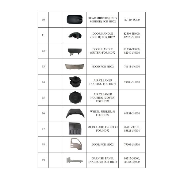 HD72 , Mirrors for Hyundai HD72 ,Mudguard for Hyundai HD72 , Splash