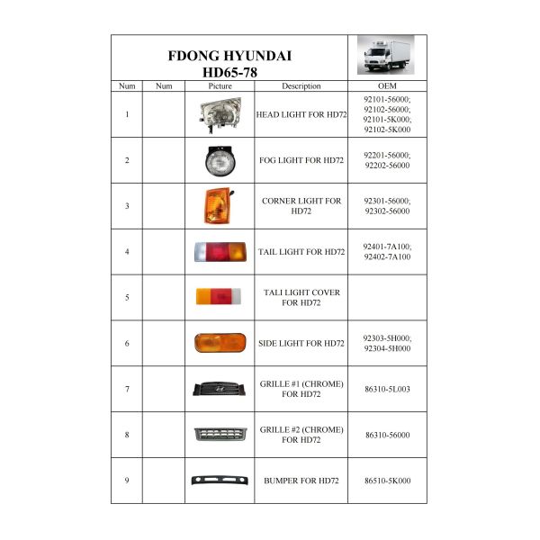 for Hyundai HD72 , Fog Lamp for Hyundai HD72 , Tail Lamp for