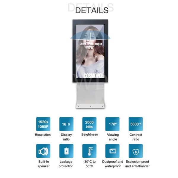 Operating system option has Android, Windows and standalone. Built-in media player and speaker, it can display advertisement as video, music, picture,rolling texts etc.