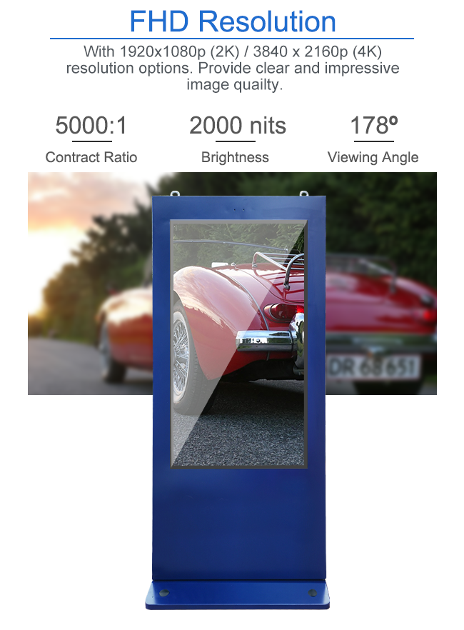 * 2K , 4K High definition screen with a wide viewing angle 178°/178°.