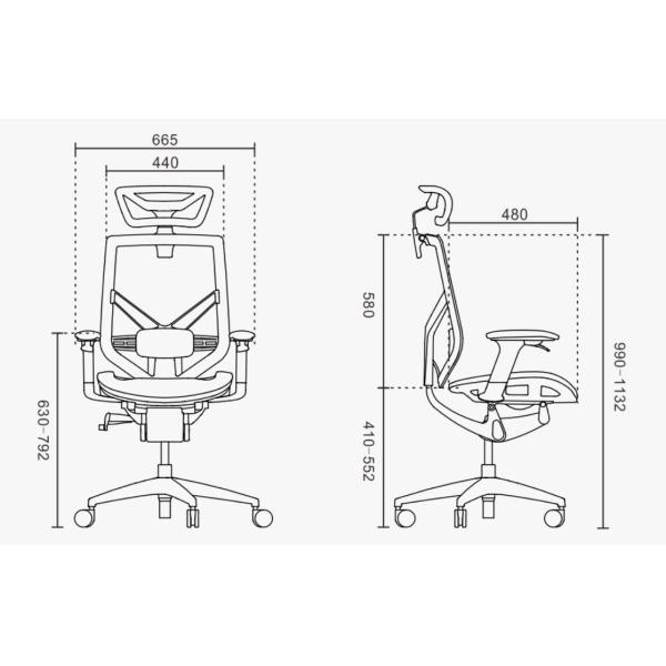 L68.5*W58~62*H107.3~126.5cm (with headrest)