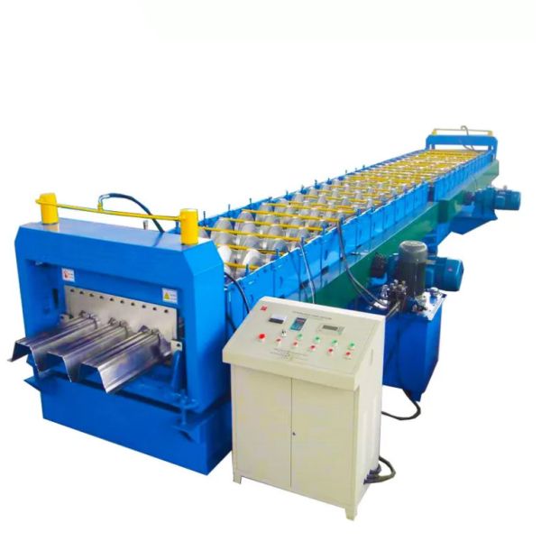 Floor deck forming machine is galvanized steel as a raw material, after rolling cold-formed technology, die forming, mainly used for the production of steel works with floor boards, rolled into the floor boards after its V-shaped cross-section into categories, U-type, a ladder or a combination of several shapes, mainly used to make permanent formwork composite slab or concrete slab.