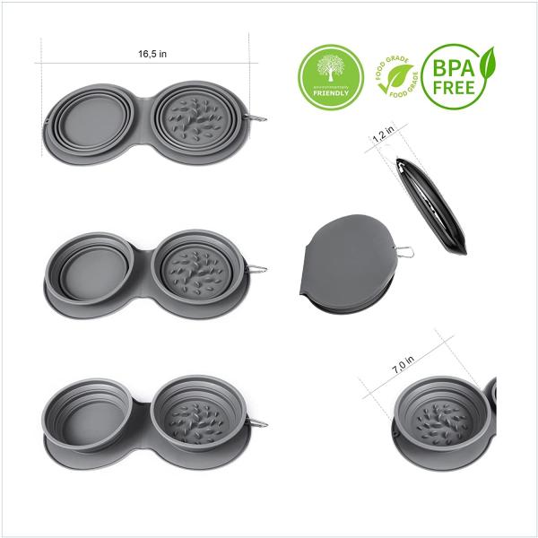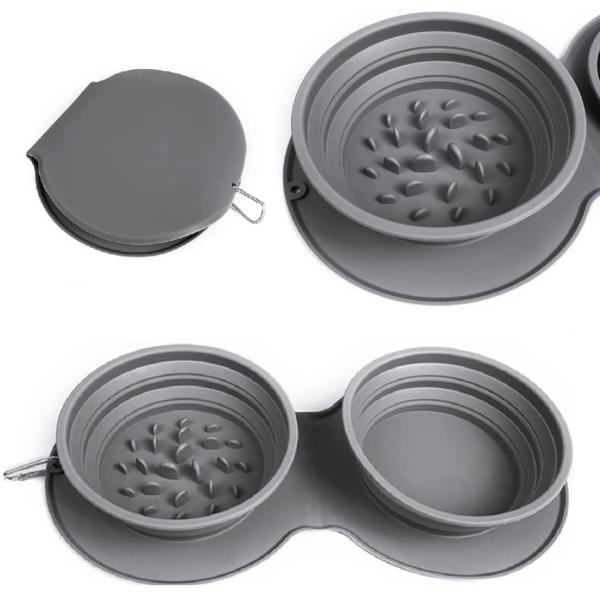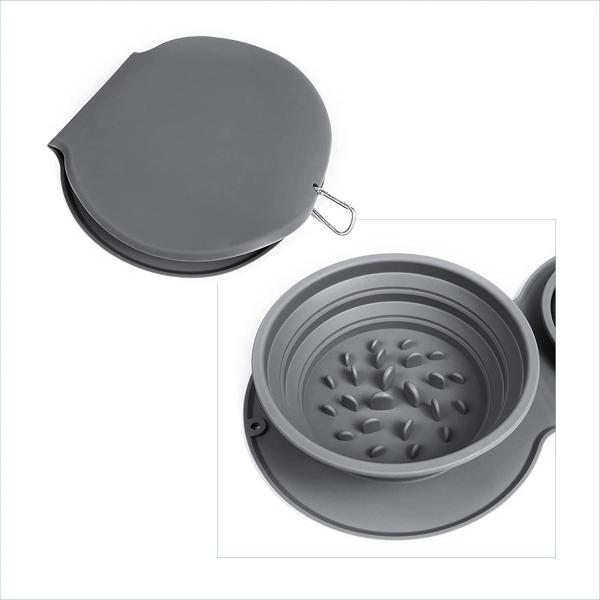 Travel Dog Bowl Collapsible Slow Feeder Double Pet Bowl Silicone