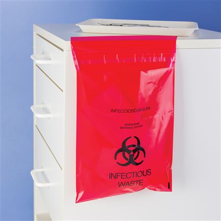 9 X10 Inch Disposable Stick-On Infectious Waste Bags Peel / Stick