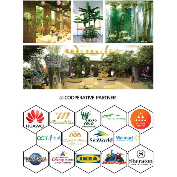 | Advantages | 1).High imitation which looks like the real 2).Strong resistance of UV, wind, frost, rain, snow and decay 3).Super power of anti-aging and anti-fading 4).Easy to care 5).Promptly delivery 6).No harm to human and environment |