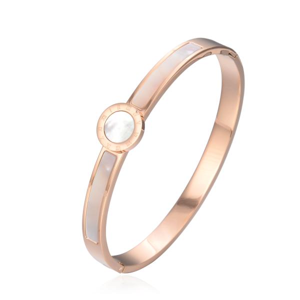 dowager brand 14k gold stainless steel bangles and white enamel inlaid bracelet