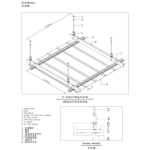 Model: | Aluminum Perforated G Strip Ceiling Panels | Function: | Sound absorption,Fireproof,Waterproof,Light weight,Easy