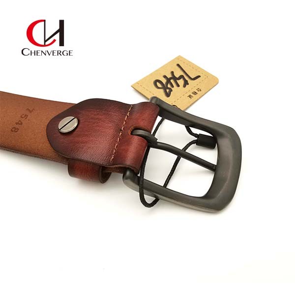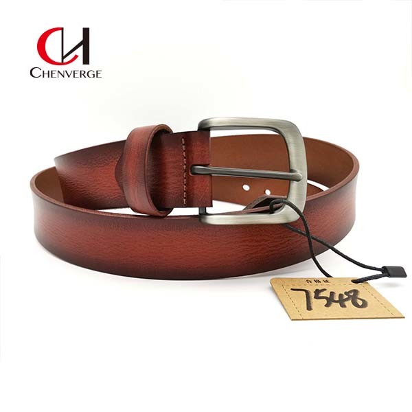 Nickel color zinc alloy pin buckle pure cowhide men’s belt adult cowboy
