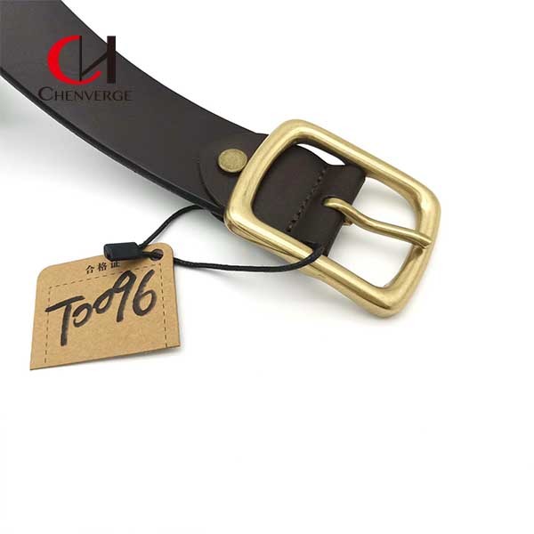 Copper center bar buckle cowhide belt men's hand-woven retro jeans belt