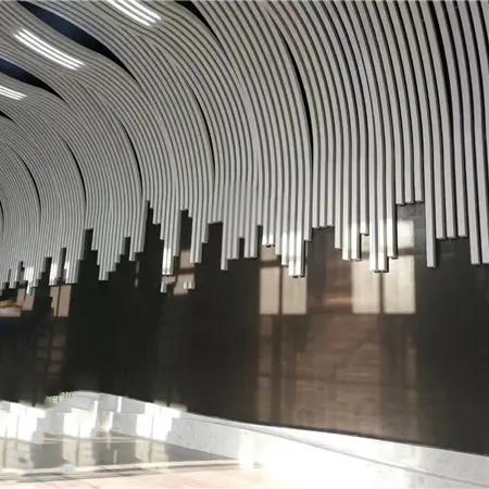 Generally, customers provide drawings for production of arc-shaped aluminum square pass, or customers provide effect drawings. Our company will arrange designers to set out at the site and then make sure