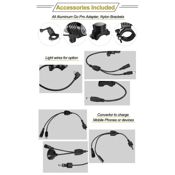 4. Charging Method:The lamp is rechargeable and can be quickly recharged via a USB-DC Charger.USB rechargeable bike lights can be charged when connected to any device with a usb port. The light has four working modes and it is easy to adjust to the mode you need by pressing the tail switch button. It has a large capacity battery pack that can last a long time, the button will turn to red light when the left power is under 5% so you can recharge it in time for next use.