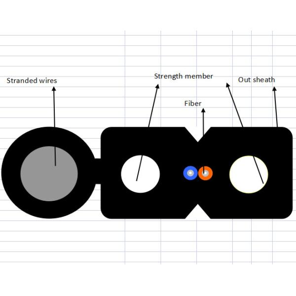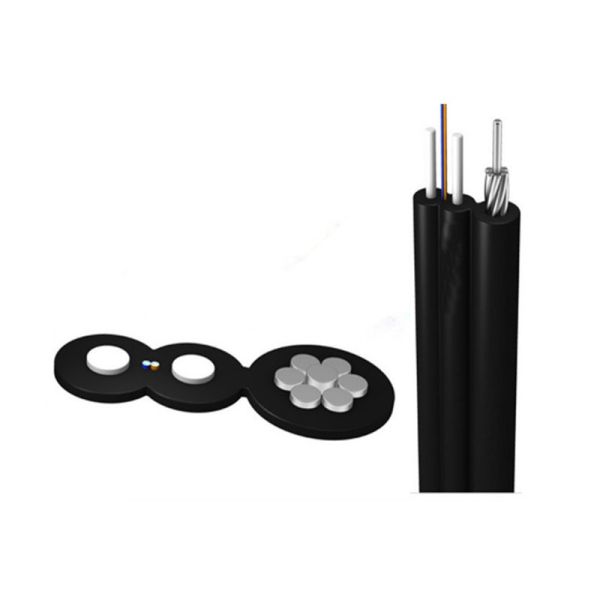The optical fiber unit is positioned in the centre. Two parallel Fiber Reinforced Plastics (FRP) or steel wire are placed at the two sides. A steel wire 1.2mm or other size as the additional strength member is also applied. Then the cable is completed with a black or color LSZH sheath.