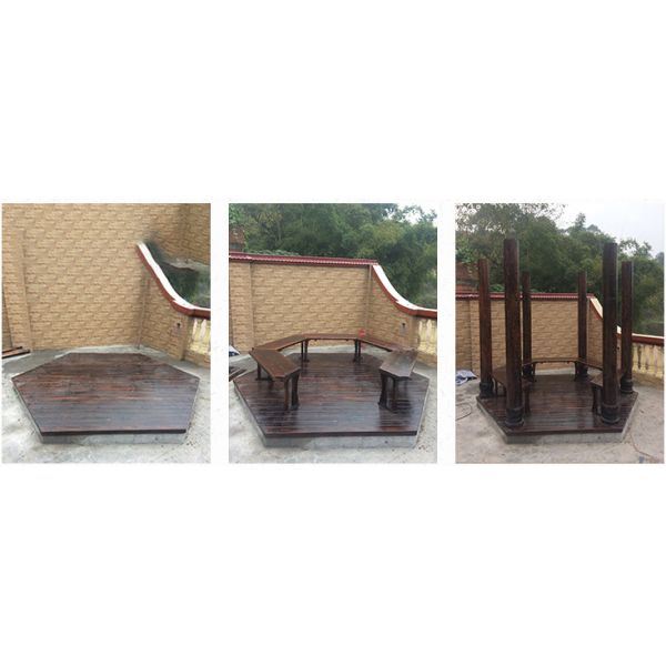 airy environment. The wooden gazebo provides a comfortable and leisure place for activities,