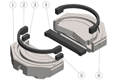 1. Down shear ram 2. Set srew 3. Left seal 4. Up blade