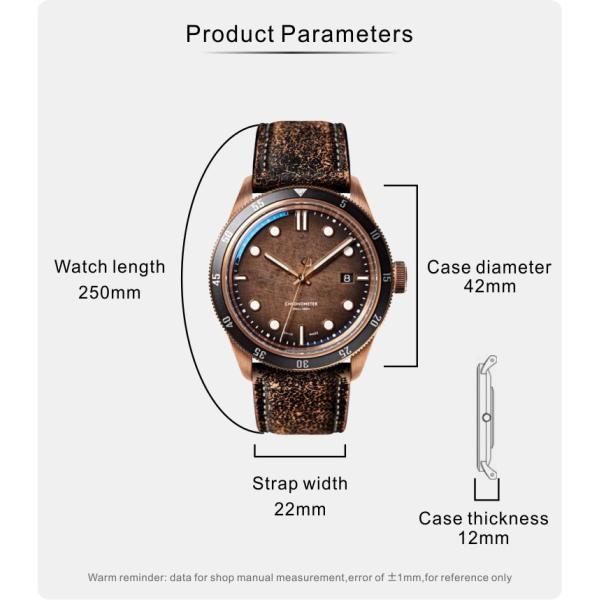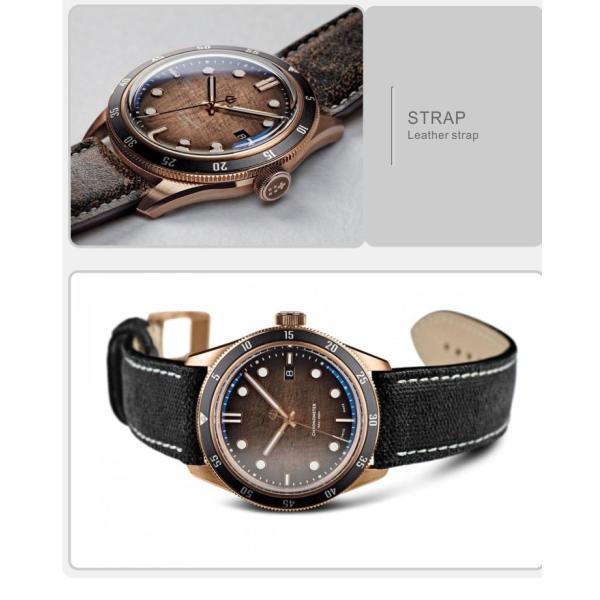 Bronze Luminous Date Function 42mm Anglogue Wrist Watch Leather Strap