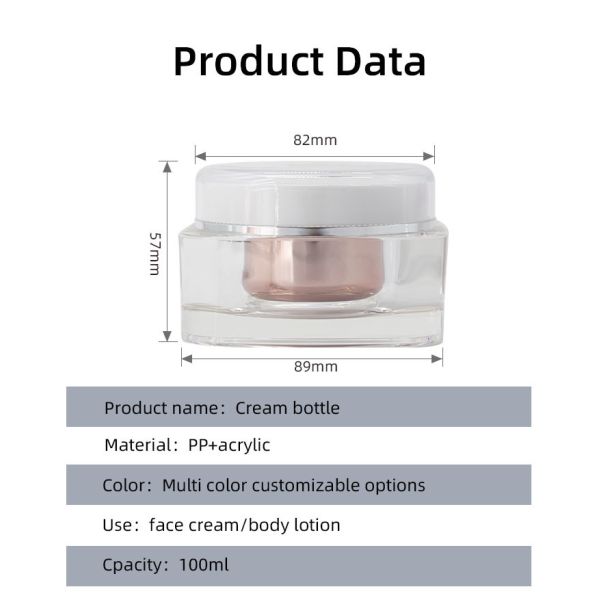 UKC38 Square Shape Acrylic 100g Od 87mm Doble Wall Cosmetic Skincare Cream Jar