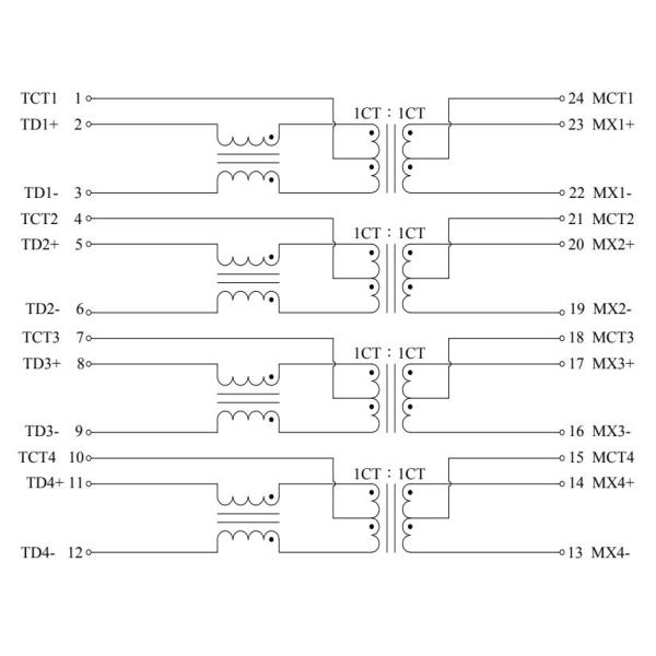 L22T008-4 1000 Base –T LAN Filter PoE_90W ELECTRICAL CHARACTERISTICS Schematic: