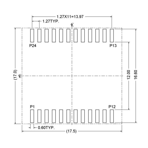 L22T008-4 Single Port 1000 Base –T Ethernet Magnetic Transformers Product Dimension: